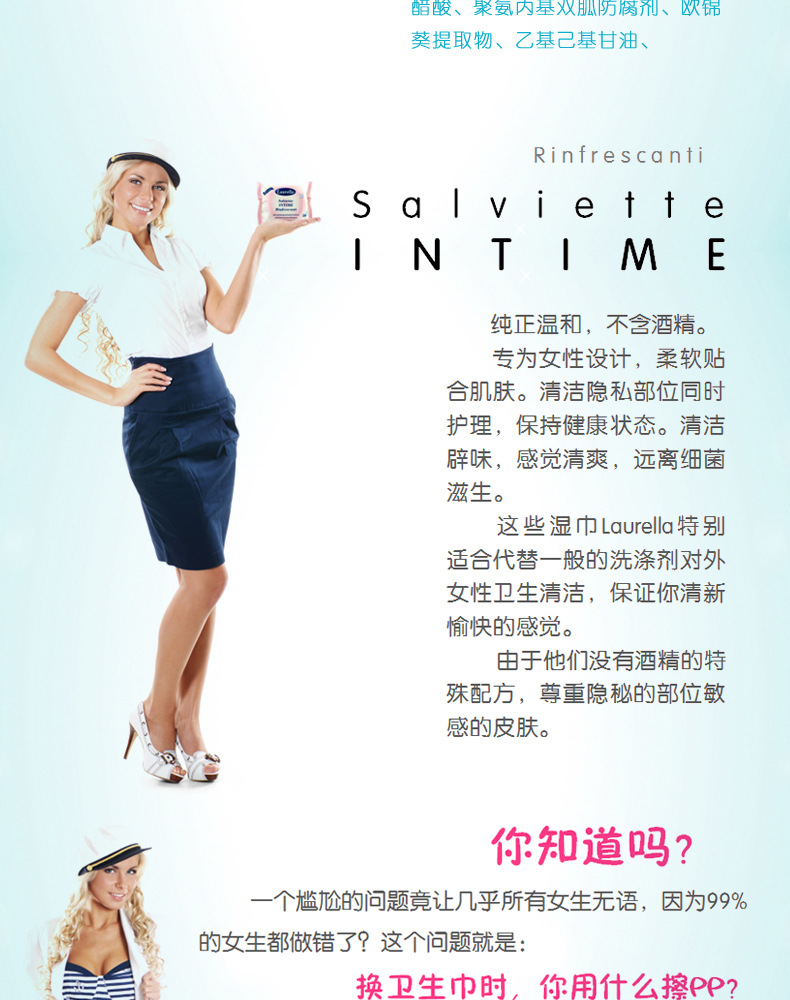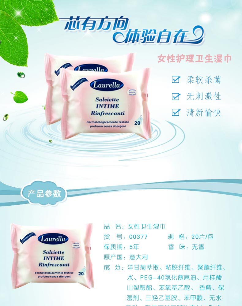 意大利进口奥莱洁女除菌亲肤卫生清洁湿巾20片正品