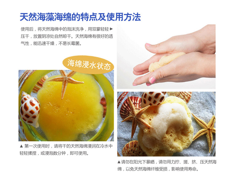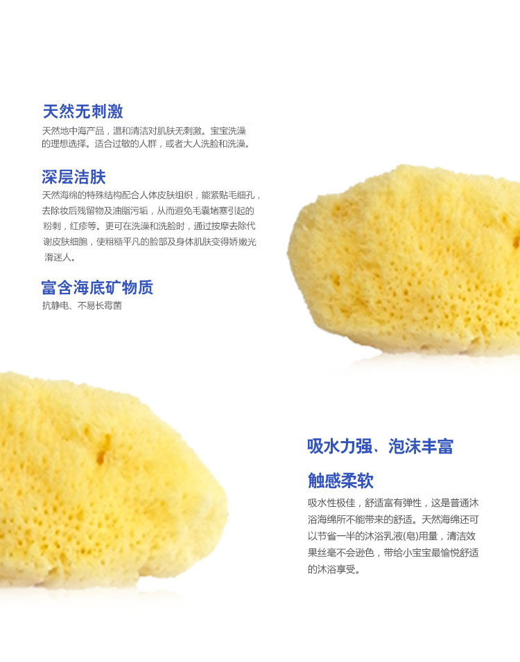 天然洁肤海绵,不起静电,不长霉菌无异味,柔软舒适