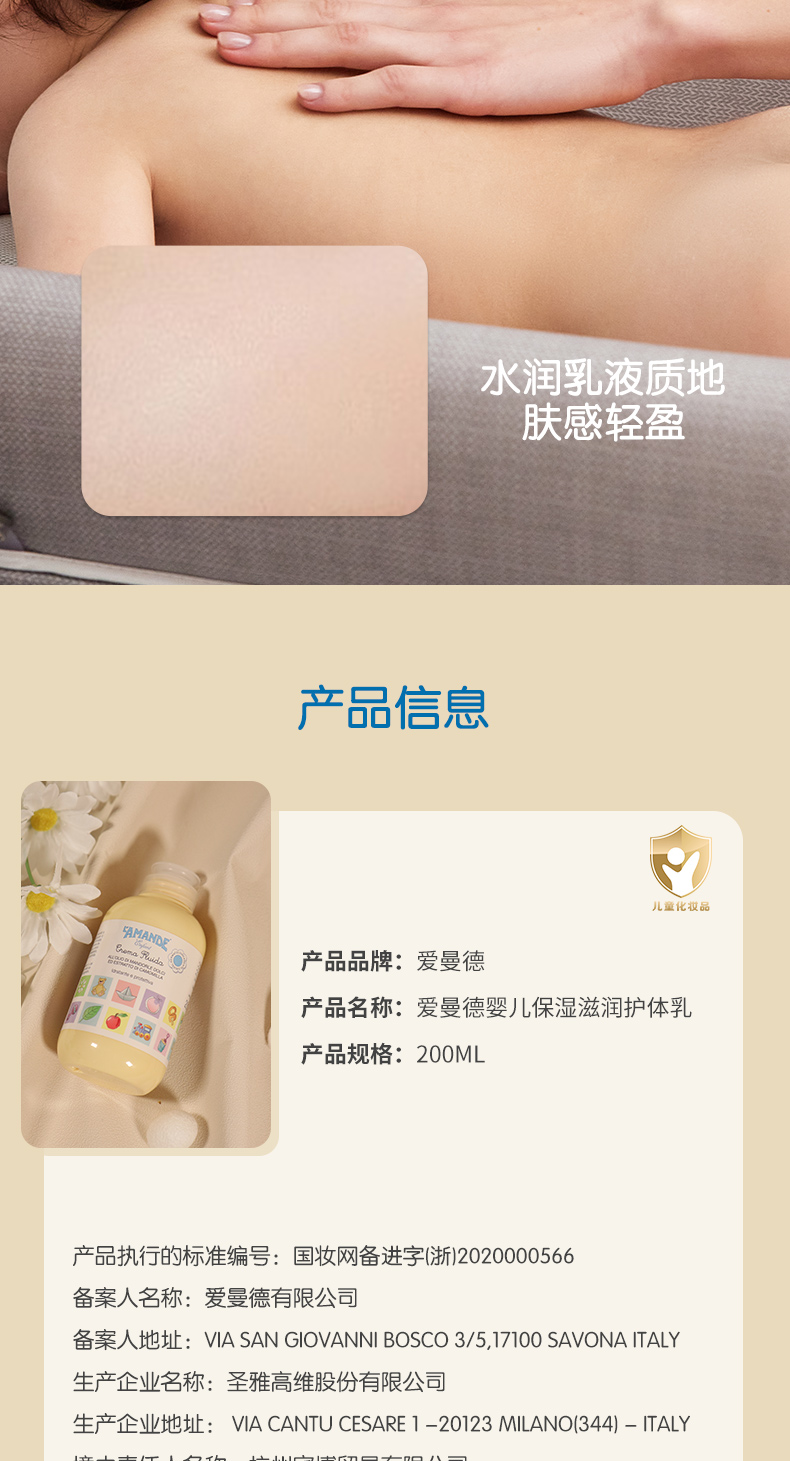 爱曼德婴儿保湿滋润护体乳