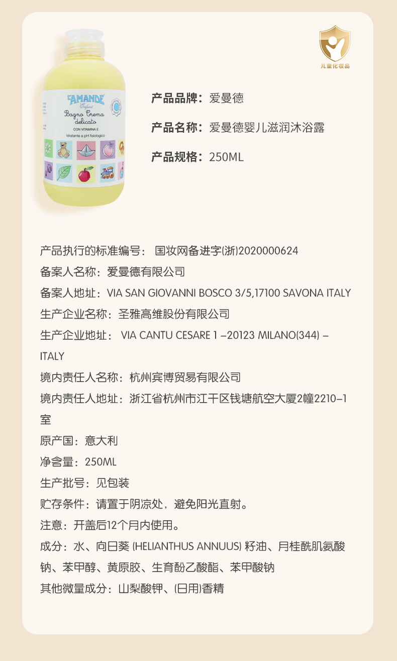 爱曼德婴儿滋润沐浴露
