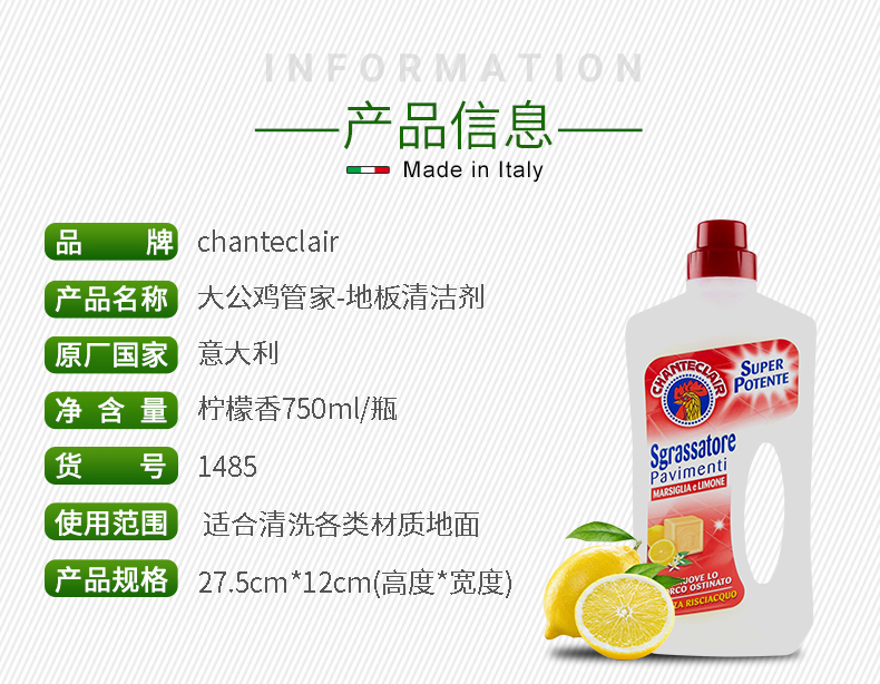 大公鸡管家 柠檬香地板清洁剂