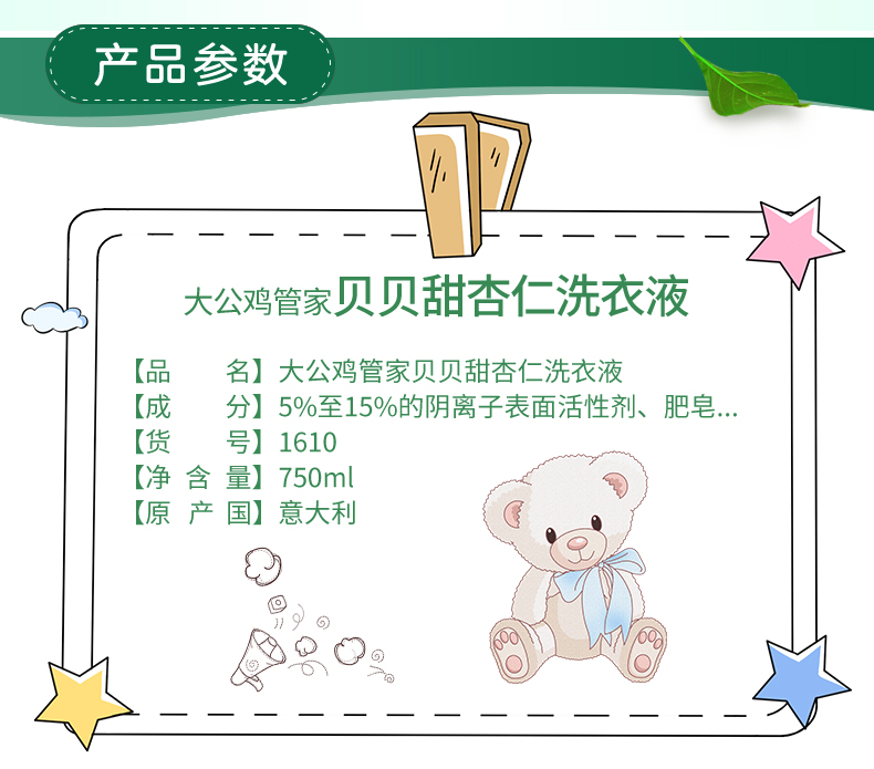 大公鸡管家 贝贝甜杏仁洗衣液(植物配方)
