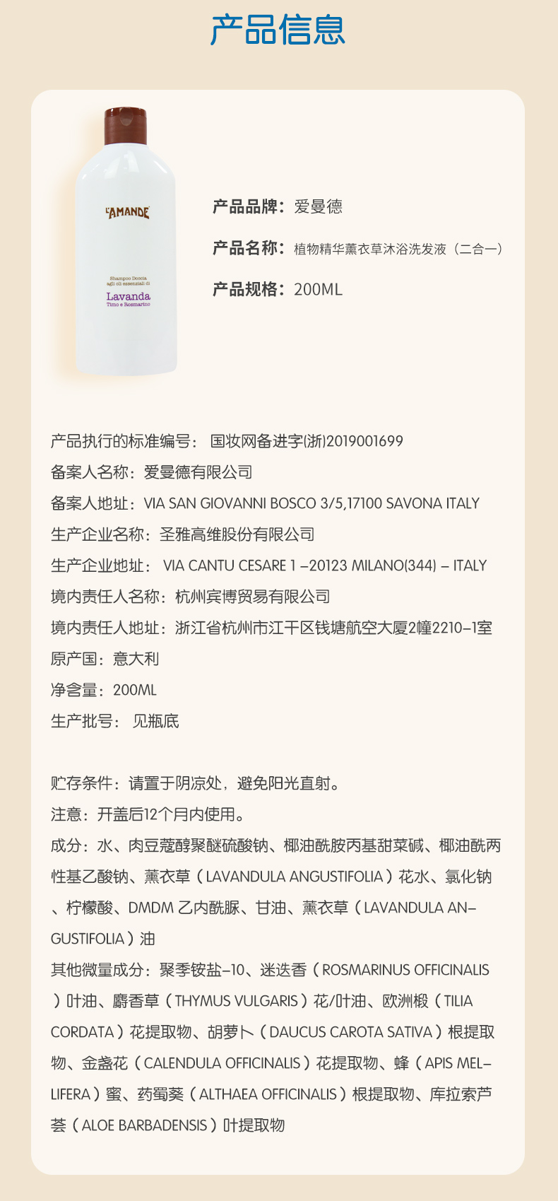 爱曼德植物精华薰衣草沐浴洗发液(二合一)